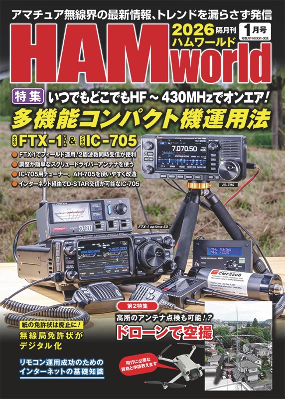 本号の特集では、話題の新製品ヤエスFTX-1と、アイコムの人気機種IC-705にフィーチャー。コンパクトサイズのHF〜430MHz機の活用を紹介しています。